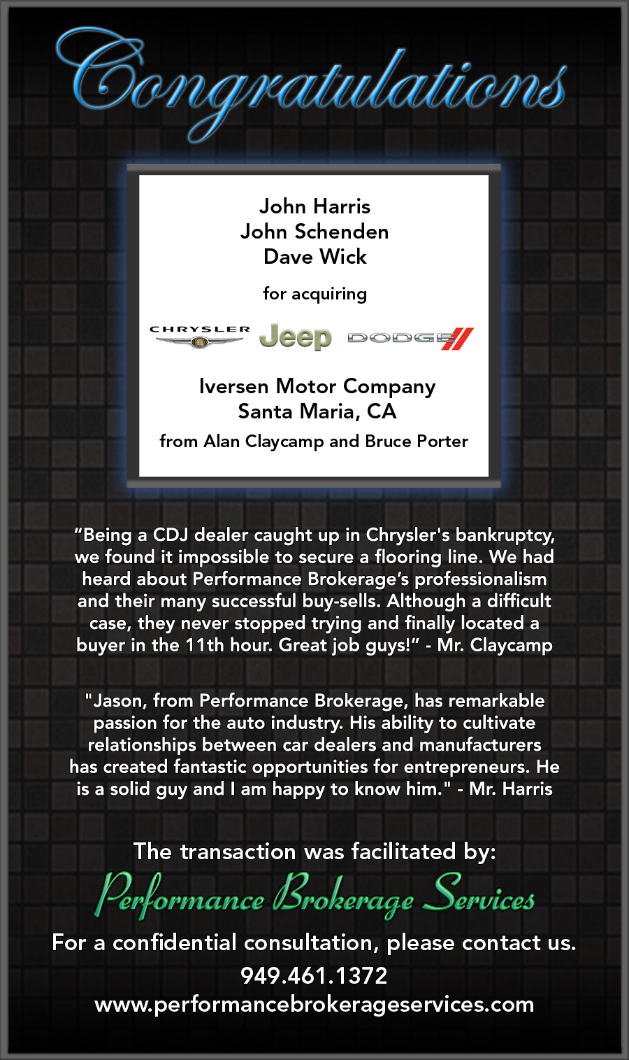 Automotive Announcing the Sale of a Chrysler Dealership in Santa Maria, CaliforniaOctober 31, 2011 Chrysler Dodge Jeep Ram of Santa Maria, California