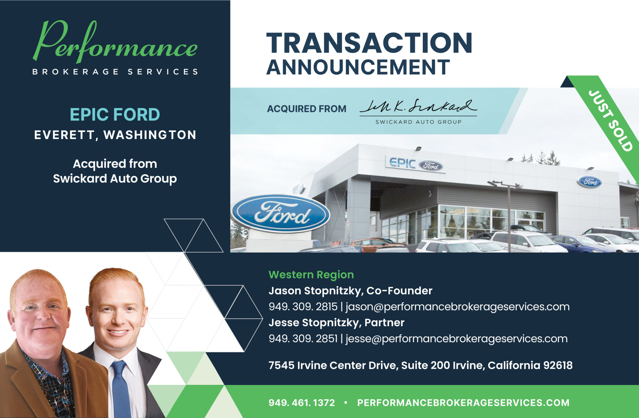 Performance Brokerage Services advises on the sale of Epic Ford of Everett, Washington from Swickard Auto Group to surrounding dealers.