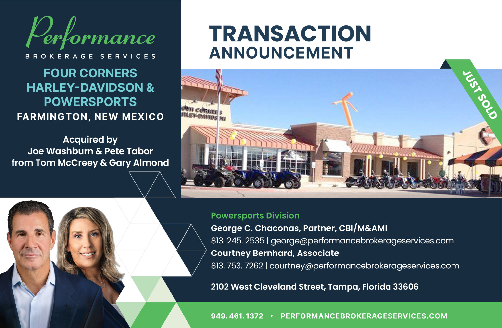 Performance Brokerage Services, North America’s highest volume dealership brokerage firm, is pleased to announce the sale of Four Corners Harley-Davidson…
