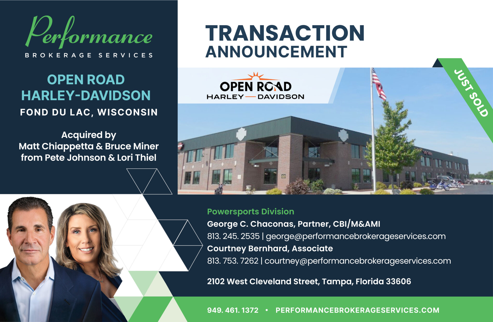 Performance Brokerage Services, the leader in dealership buy-sell activity, announces the sale of Open Road Harley-Davidson of Fond du Lac,…