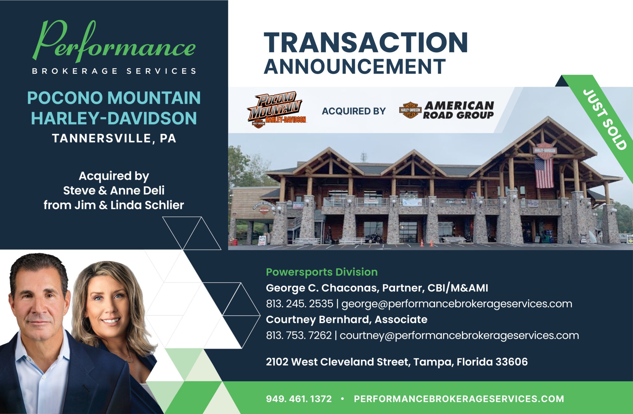 Performance Brokerage Services, North America’s highest volume dealership brokerage firm, is pleased to announce the sale of Pocono Mountain Harley-Davidson…