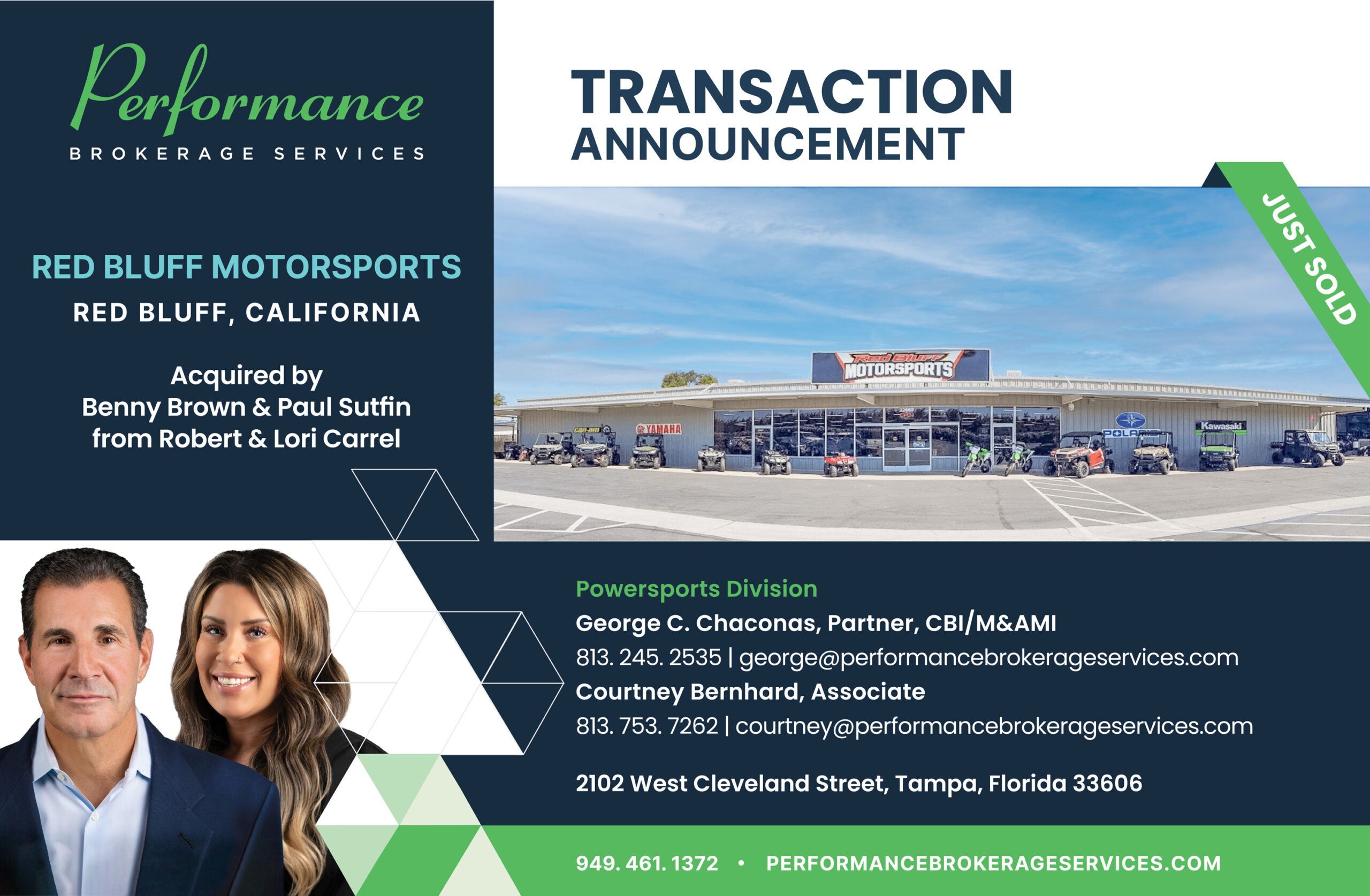 Performance Brokerage is pleased to announce the sale of Red Bluff Motorsports in California from Robert and Lori Carrel Benny…