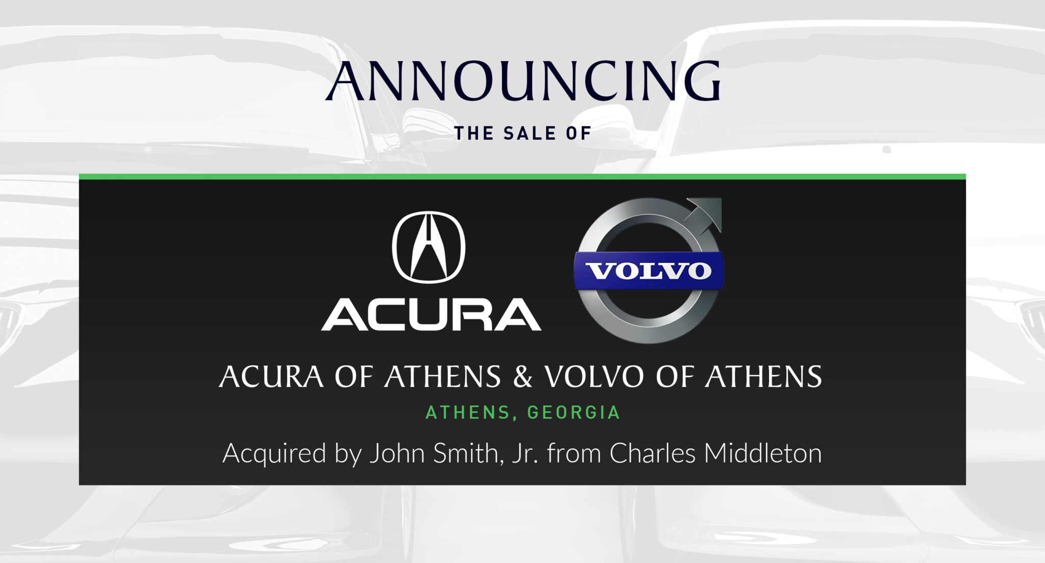 We are pleased to announce the sale of Acura of Athens and Volvo of Athens, Georgia from Charles Middleton to John Smith, Jr.