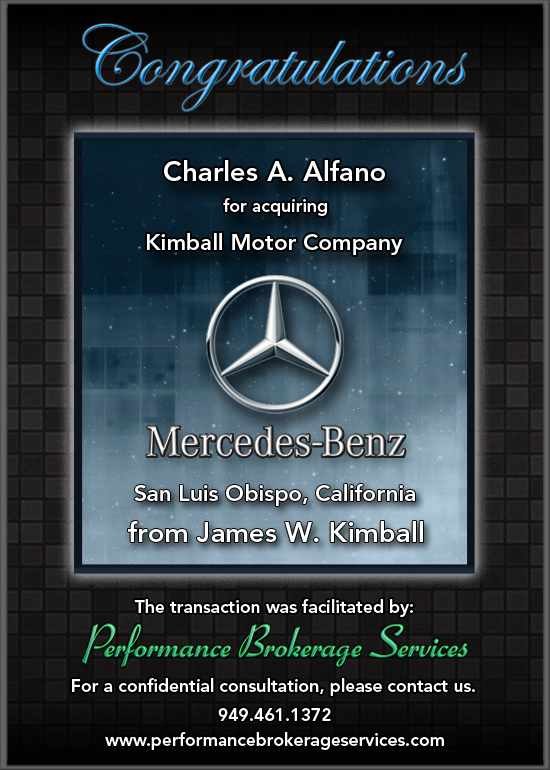 Thankfully, Kimball found success through Performance Brokerage Services, an Automobile Dealership Broker who successfully facilitated the sale to Charles A. Alfano, Jr. who had no plans to move his newly acquired Kimball Motor Company from its longtime home.